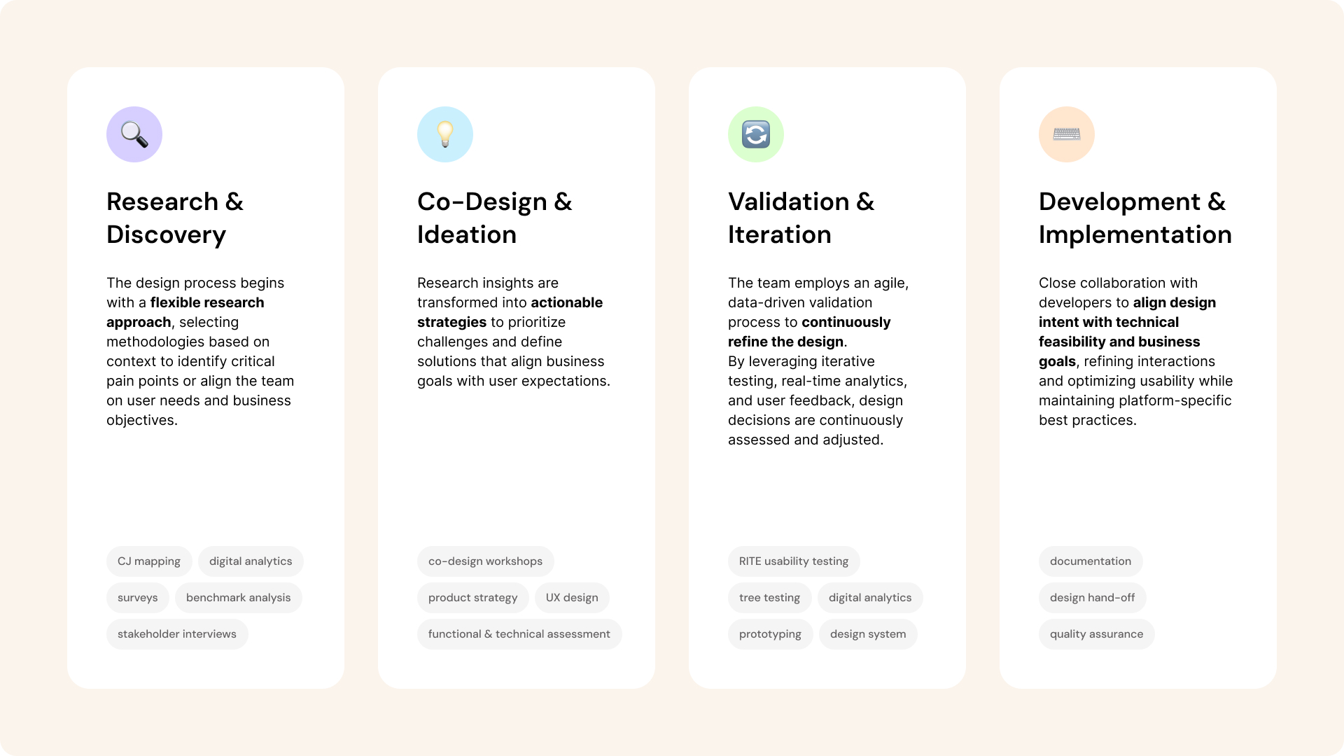 By strategically integrating these processes, the team ensures a user-centered design while maintaining a strong alignment with business goals. The result is a product that balances innovation with consistency, meeting both user and shareholder expectations.